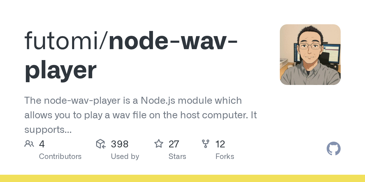 GitHub - futomi/node-wav-player: The node-wav-player is a Node.js module which allows you to play a wav file on the host computer. It supports Windows 10, MacOS X, and some Linux distros.