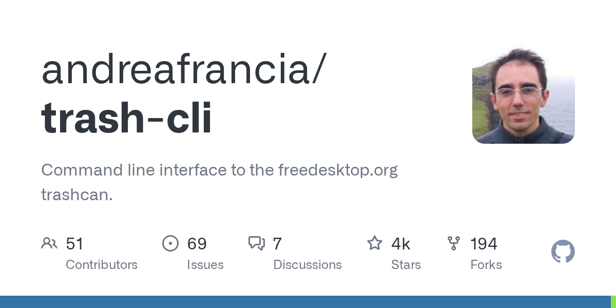 GitHub - andreafrancia/trash-cli: Command line interface to the freedesktop.org trashcan.